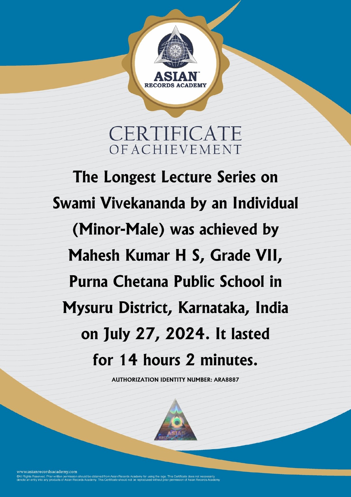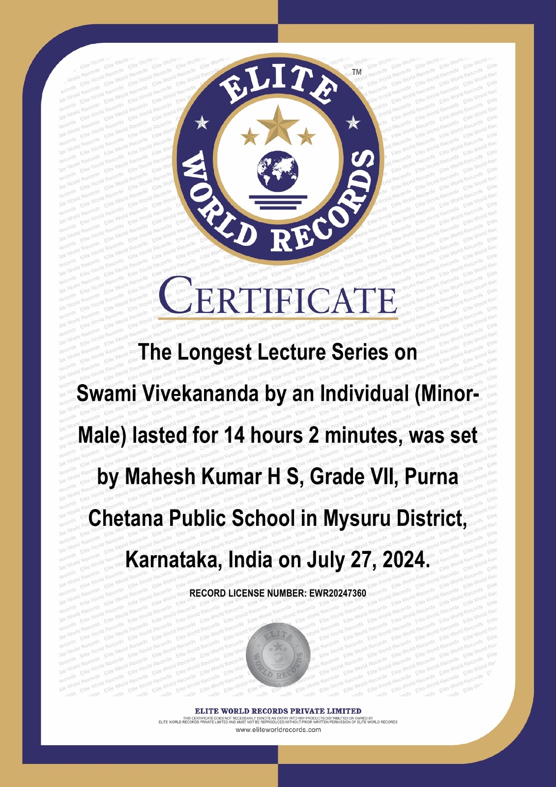 Longest Lecture Series on Swami Vivekananda by an Individual (Minor-Male)