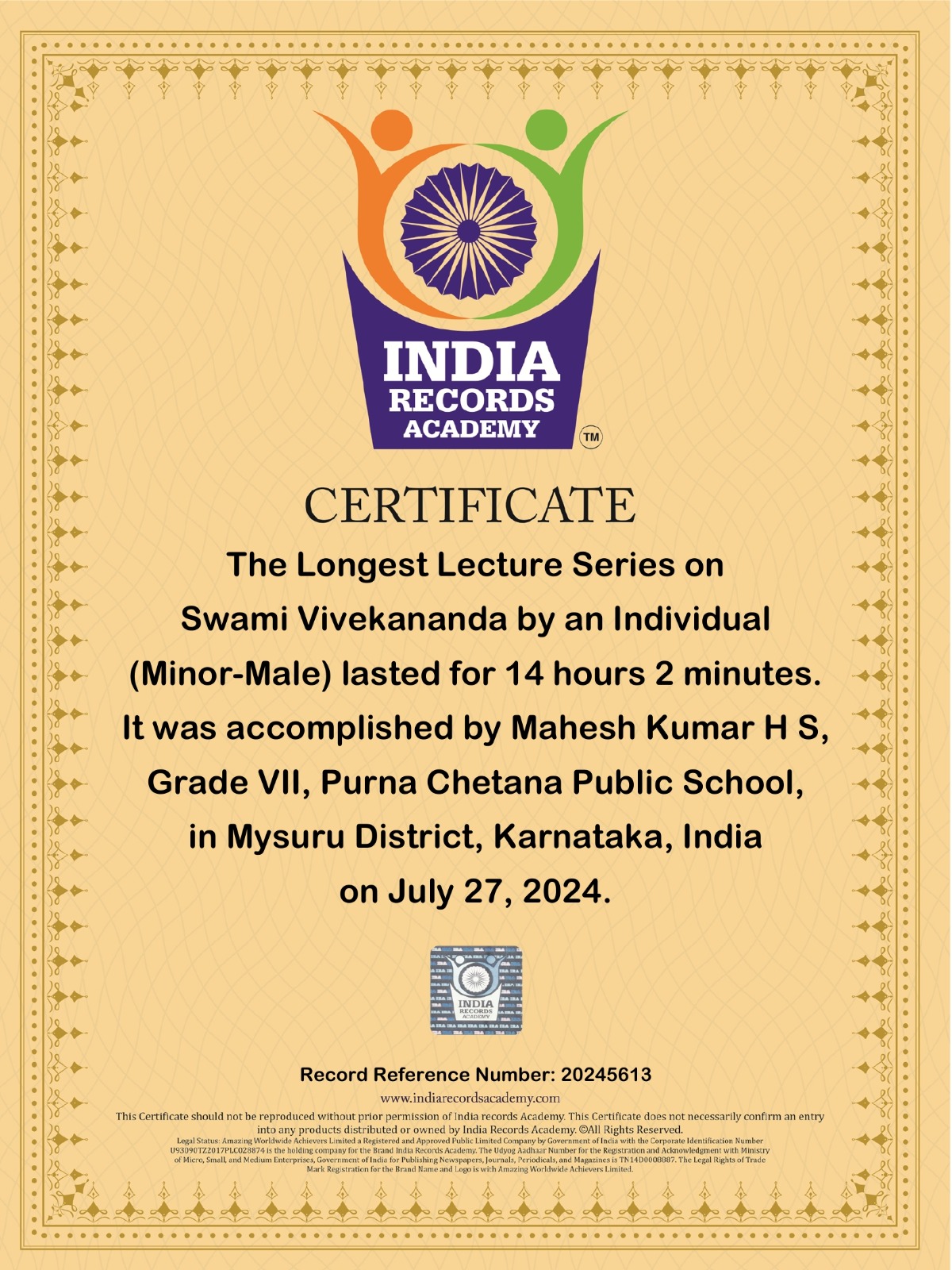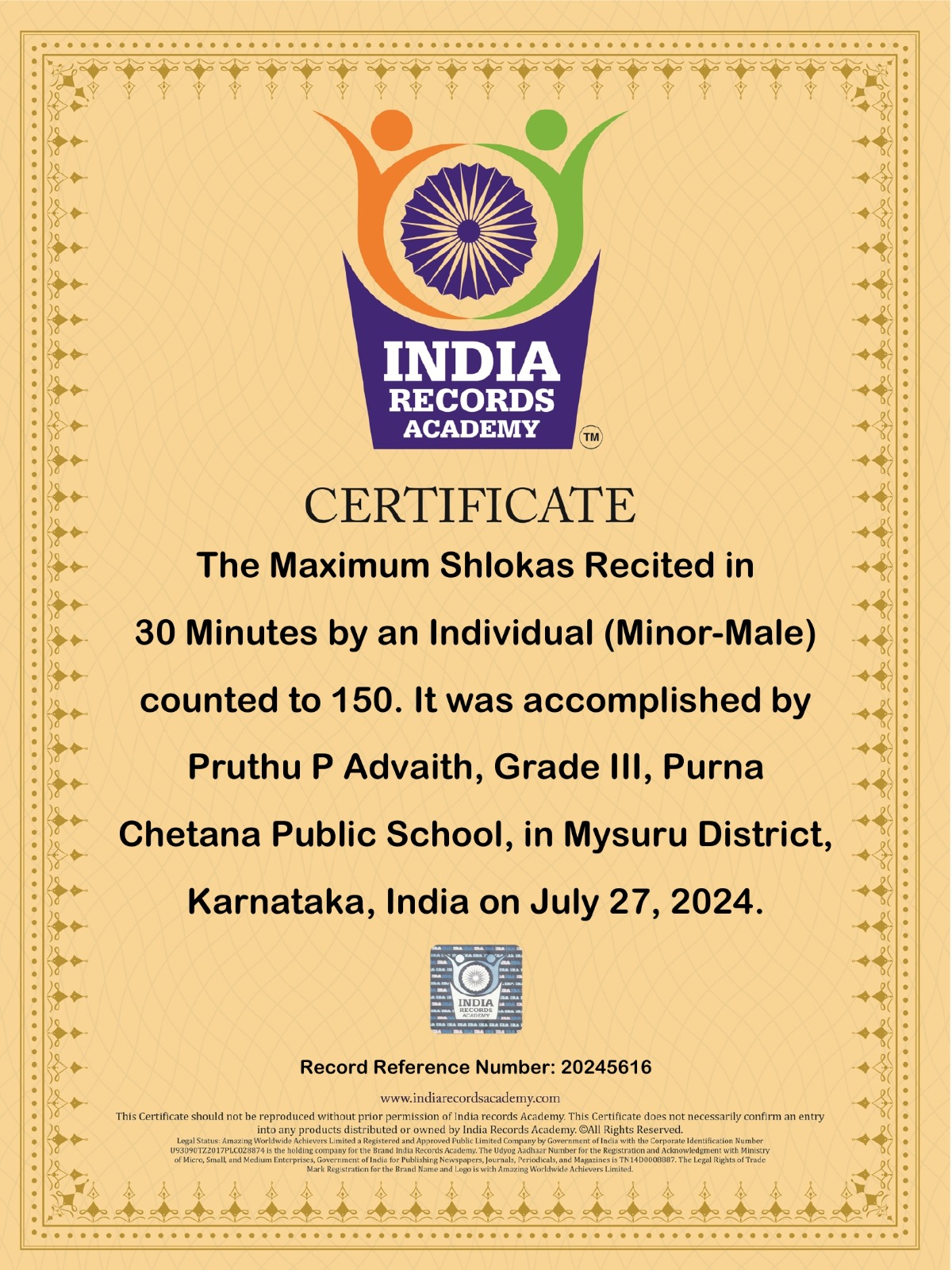 Each record-breaking achievement reflects Purna Chetana Public School’s core values of innovation, environmental stewardship, cultural pride, and spiritual growth. Together, these records stand as a testament to the school’s unique approach to nurturing young minds, pushing educational boundaries, and inspiring a love for learning that extends beyond the classroom.