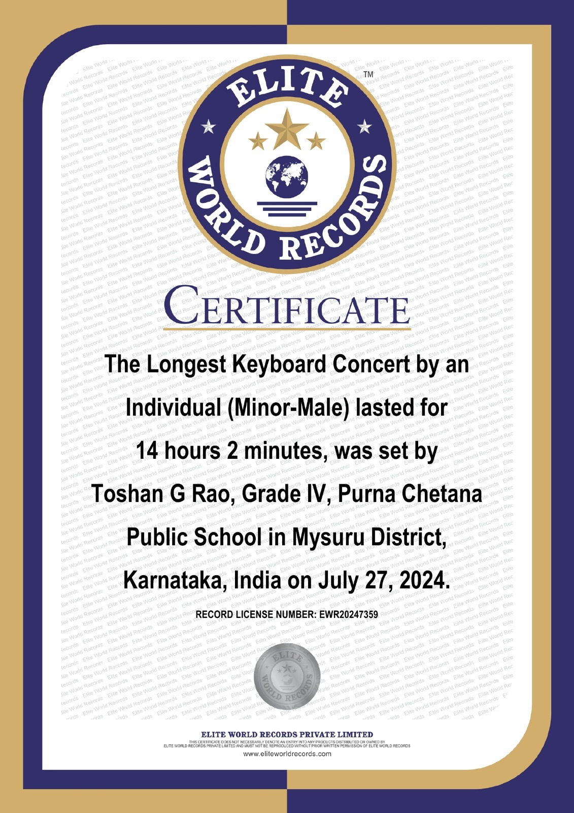 Longest Keyboard Concert by an Individual (Minor-Male)