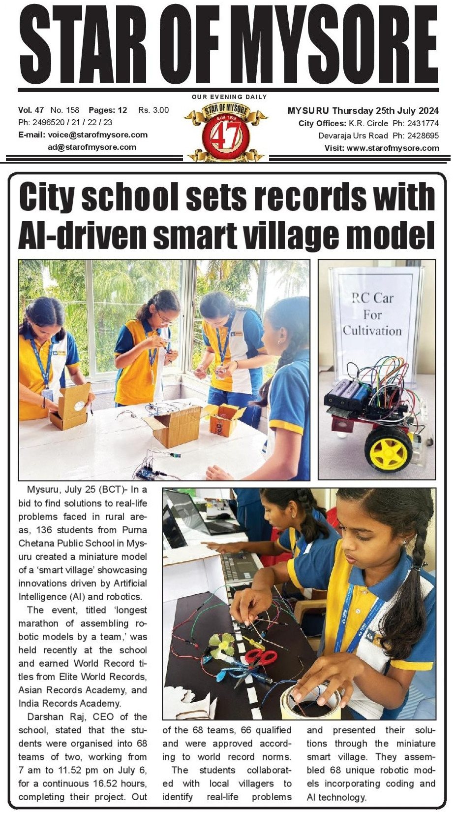 132 young engineers worked tirelessly for 16 hours and 52 minutes, assembling 66 unique robotic models under the “SMART VILLAGE THEME.” These creations, including a Garbage Segregator and Automatic Pump for Fields, highlight the school’s advanced STEM curriculum and foster problem-solving skills and creativity in real-world applications.